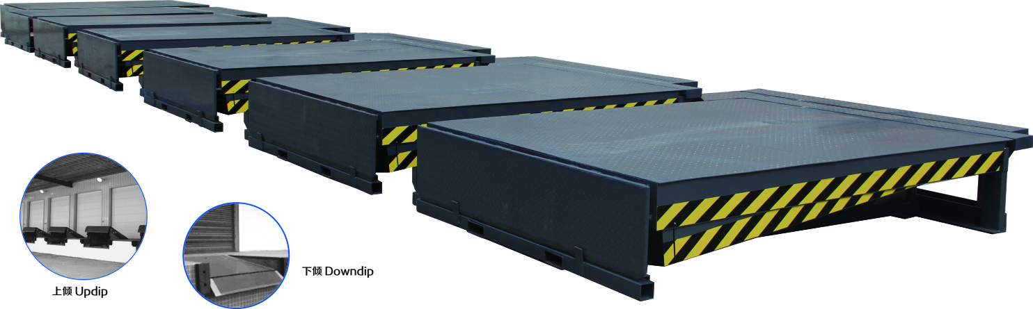 固定式液壓登車橋(又名:高度調節板/卸貨平臺或電動液壓月臺)是實現貨物快速裝卸的專用輔助設備,安裝在月臺、建筑物上,搭接于貨車車廂,調節月臺、建筑物地面與車廂之間的高度差。登車橋前端的可翻轉搭接扳在裝卸貨物時始終緊貼車廂。登車橋的角度調節功能使使貨車與建筑物地面之間架起一座橋梁,各種搬運車可順利通過登車橋,在建筑物地面與車廂間運送貨物。并且,只需一個操作工人作業,即可實現貨物的快速裝卸。它使企業減少大量勞力,提高工作效率,獲取更大經濟效益.是現代企業安全生產,提高物料流通速度之優選。